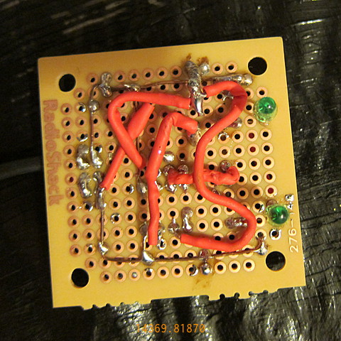 - LED circuit board back, chaotic point to point wiring.