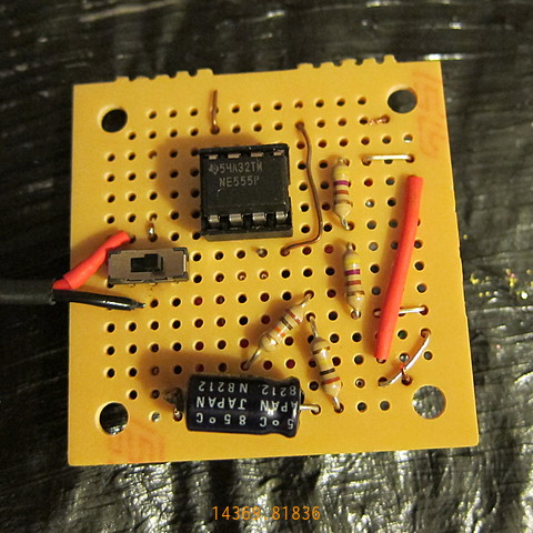 Schematic diagram for the blinking LEDs. This is derived from other LED flashing circuits found on the web. It uses a 555 timer.